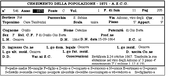 Per trascrivere parte del documento sopra illustrato è stato adoperato un flat file manager (Provue, Panorama II), creando un file intitolato "Cens_1871".