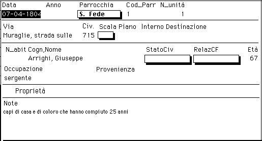 Fig. 2 - Schermata di immissione dei dati del Censimento del 1804