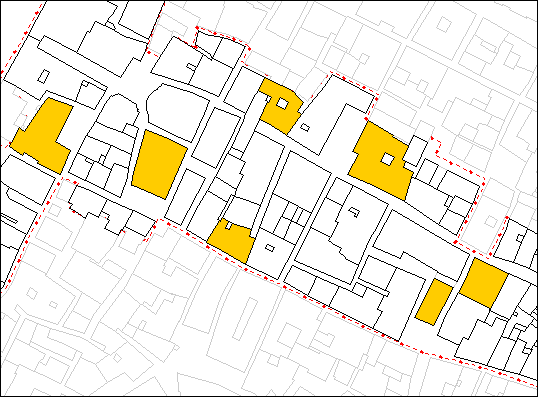 Gli accorpamenti ottocenteschi, spesso di case che vogliono spostare l'acceso dalle vie laterali alle grandi strade, si risolvono in planimetrie complesse nelle aree centrali.