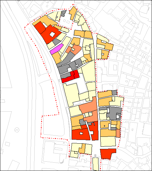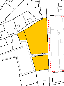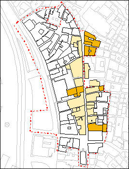 | S. Luca: edifici con accesso chiuso sui vicoli laterali (in giallo scuro) |