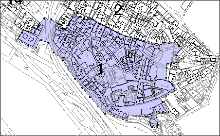 L'assetto del costruito presenta un aspetto nel suo complesso ordinato, essendo frutto di realizzazioni di carattere lottizzativo prevalentemente monocellulare. Un'elevata percentuale di interventi edilizi, sia di tipo pluricellulare che monocellulare è stata rilevata nella zona compresa tra piazza Cavour e salita S.Maria di Castello. Fenomeni di accorpamento e rifusione sono altresì stati localizzati rispettivamente nella porzione di edificato situata tra via S.Croce/via della Marina e vico dietro il coro di S.Cosimo/vico Giustiniani.