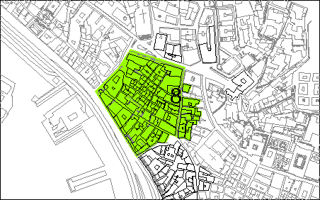 Un'altra grossa concentrazione di tipi edilizi pluricellulari emerge nell'area intorno alla chiesa di S. Marcellino, che conserva caratteristiche simili a quelle del nucleo centrale.