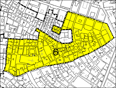 Solo una bassa percentuale dei corpi conserva ancora tracce medievali (epoca antiquaria- XIII secolo); questi sono concentrati in gran parte lungo via Macelli di Soziglia e nel quadrilatero delle Vigne. Qui le preesistenze si manifestano soprattutto nella presenza di portici tamponati. Negli isolati compresi tra via Garibaldi-piazza Fontane Marose-via Luccoli, i grandi interventi lottizzativi, che hanno portato alla costruzione dei palazzi cinque-seicenteschi, hanno cancellato le tracce di epoca medioevale.
